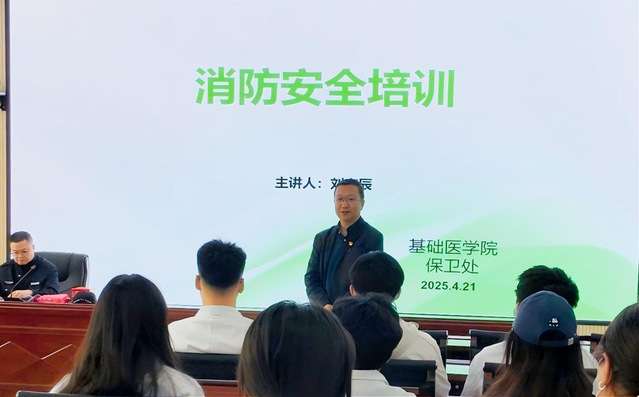 为进一步加强实验室消防安全管理,提高全体人员的消防安全意识和应急处置能力。近日,基础医学科研中心组织了一场以“消防安全铭于心,防患未然始于行”为主题的专题培训活动,基础医学院副院长沈雷主持本次活动。本次培训分为理论讲解、安全考试两部分。