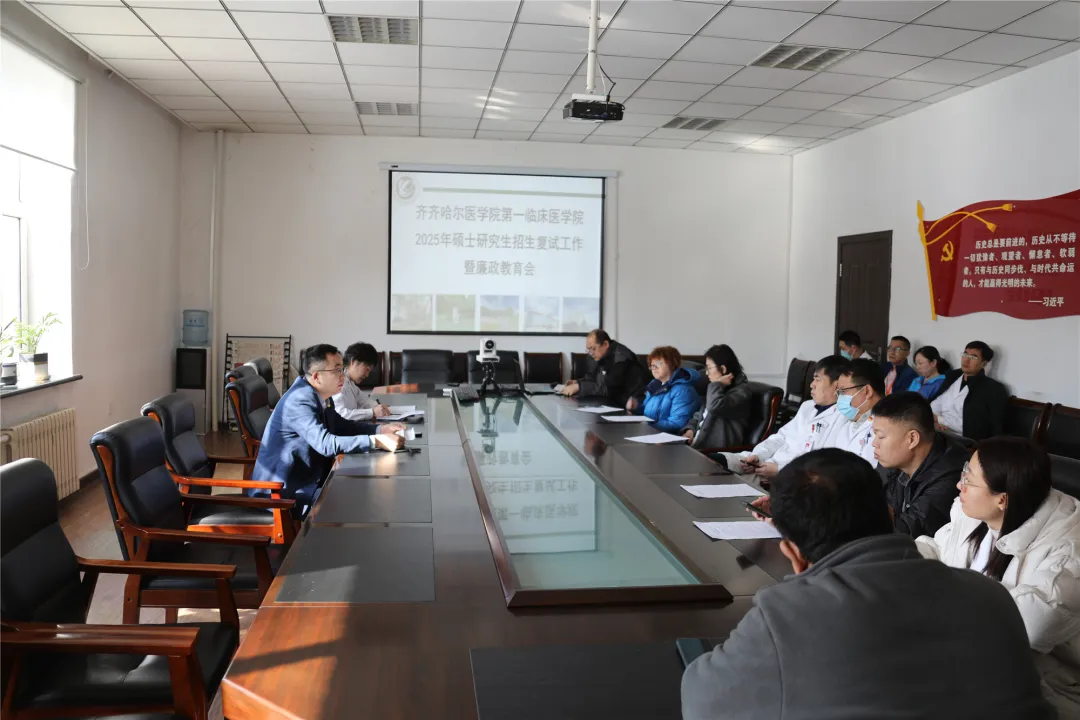 副院长刘忠锦带领领导小组在复试工作会议上深入研讨并制定了我院2025 年硕士研究生复试录取工作实施细则和复试工作方案等。复试前,医院精心筹备,提前进行教室统筹、人员安排、后勤保障等多项工作,并开展复试工作培训和模拟演练等,切实保障招生复试工作的顺利进行。