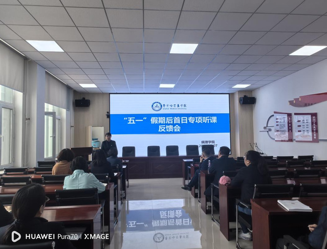 为深入贯彻落实《齐齐哈尔医学院听课管理办法(修订)》(院政发〔2024〕21号)和《齐齐哈尔医学院本科教育教学审核评估整改方案》(院发〔2024〕21号)的要求,根据学院“关于开展‘五一’假期后首日专项听课的通知”的部署,病理学院于5月7日召开了“五一”假期后首日专项听课反馈座谈会。会议由刘婷副院长主持,领导班子、教学督导、教研室主任和全体授课教师参与。