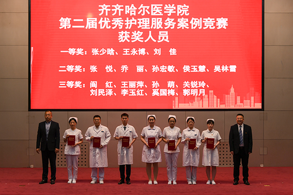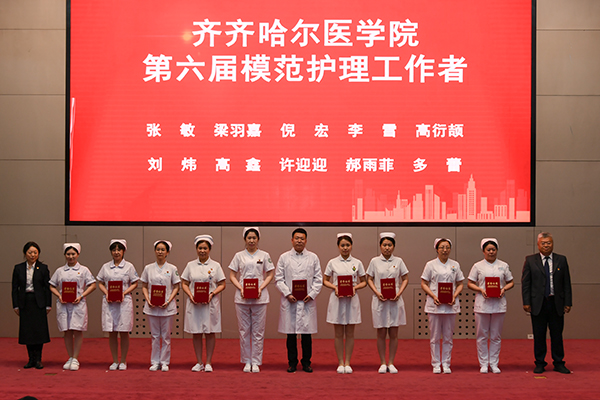 会上,学院副院长史耀忠、纪委书记李龙珠、副院长于海涛依次宣读了《中共中央 国务院关于表彰全国劳动模范和先进工作者的决定》《齐齐哈尔医学院第六届模范护理工作者命名表彰决定》以及《齐齐哈尔医学院第二届优秀护理服务案例竞赛结果公布通知》,随后,与会领导为获奖代表颁发了荣誉证书。