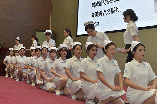 随后,大会举行了新护士授帽仪式,附属第一、二、三医院护理部主任向新入职护士代表授予护士帽,鼓励他们传承南丁格尔精神,在护理岗位上发光发热,现场响起了热烈的掌声。这不仅仅是对新护士们的欢迎和认可,更是对他们未来护理生涯的期许和祝福。