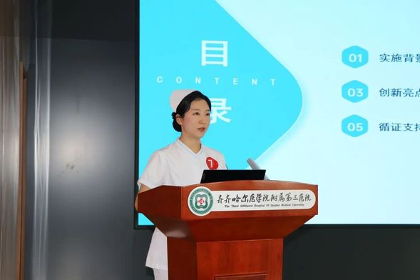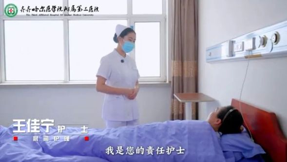以心“护”行 情暖医途为提升护理人员人文关怀能力,我院在2024年“春风化‘语’——护理语言行为规范百日行动”活动基础上,进一步规范护理人员语言行为规范,全院各部门护理人员按照《齐齐哈尔医学院附属第三医院语言行为规范指南手册》中护理人员语言行为要求,录制护患沟通场景视频,最终评选优秀作品制作患者住院护理全流程规范沟通视频。