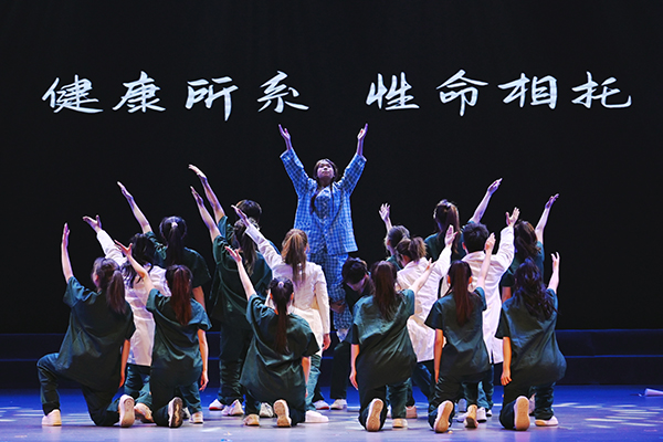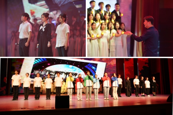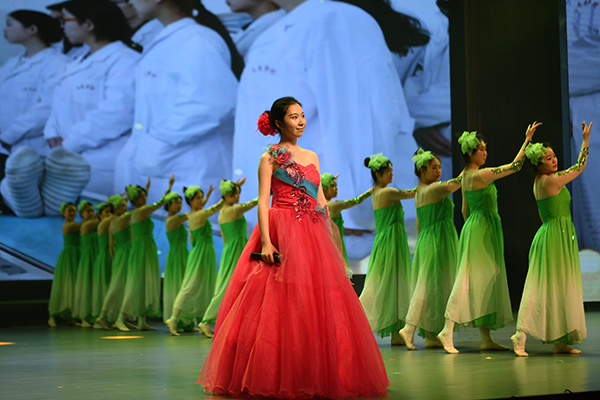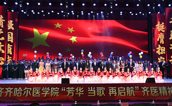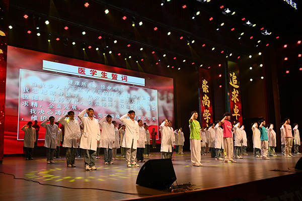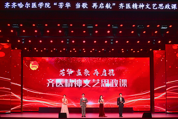 参演同学王佳润表示,“创作和表演过程本身也是一次深刻的校史教育与文化浸润。”他指的正是重头戏,原创情景诗朗诵《齐医正青春》。该节目融合唱、朗诵、舞蹈于一体,青年学生化身不同办学阶段、不同身份的亲历者,讲述齐医故事。一张张老照片,串联起学院历史上的重大事件,展现时代的变迁、齐医的变化,歌颂“自强不息 甘于奉献”的齐医精神,激发起齐医人为实现齐医梦奋斗的激情。音乐剧《百年青春》通过齐医青年与五四青年先驱的隔空对话,让当代青年沉浸式感受前辈的抉择与坚守,展现了当代青年的信仰、担当与奋斗。舞剧《守护》以街舞的形式讲述了医护人员争分夺秒与死神搏斗、护佑生命健康的故事,升华了“大医精诚”的时代内涵,激发青年学生成为“人民健康守门人”的职业精神。全新演绎的《如愿》《出发的心》《强国一代有我在》 《在希望的田野上》等同名歌曲,与展现齐医人扎根北疆、潜心教书育人的群像完美结合,奏响了“大学至善”的当代回响。文艺思政课在合唱中落幕,配合朗诵医学生誓言,实现了大医文化的“艺术表达”。从战地烽火中的医者担当,到新时代的健康守护,学院以校史为根、以文艺为翼,让医学教育既有专业厚度,更有人文温度。
