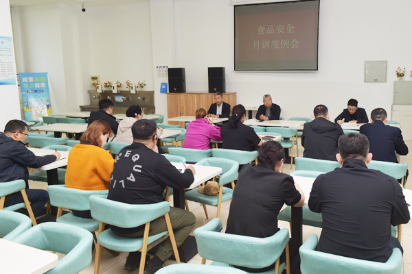 会议首先听取了各食堂食品安全员关于4月份食品安全工作的汇报,梳理了近期餐饮服务中的重点问题。针对下一阶段工作,史耀忠重点强调:要压实食品安全主体责任,明确各级管理人员职责,确保责任落实到人;要强化安全意识,通过常态化培训提升从业人员安全素养;要严格规范经营,落实食品安全日管控、周排查机制,杜绝管理漏洞;要加强风险防控,重点抓好操作人员技能培训,规范加工流程;要优化服务品质,结合“体重管理年”活动推广健康膳食理念,提供特色餐饮服务,满足师生多样化需求。