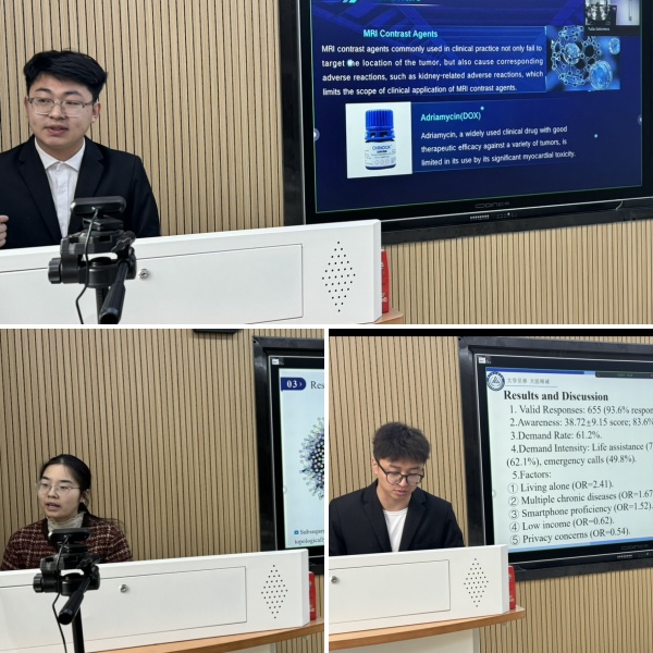 4月23日,来自医学技术学院的李嗣龙、药学院的王新悦、护理学院的刘惯忠同学,分别在郝利国、张宏莲、许伟岚三位指导教师带领下以《双功能CRGD纳米系统优化胰腺癌MRI造影和肿瘤靶向阿霉素递送》《基于网络药理学探究苍术抗炎药效物质基础研究》《齐齐哈尔市社区老年群体对护理机器人需求现状影响因素研究》为主题进行了学术报告。俄方师生对他们的的报告很感兴趣,提出了许多相关问题,会上讨论热烈,此次报告会展现了齐医学子的科研创新精神与活泼向上的风采。