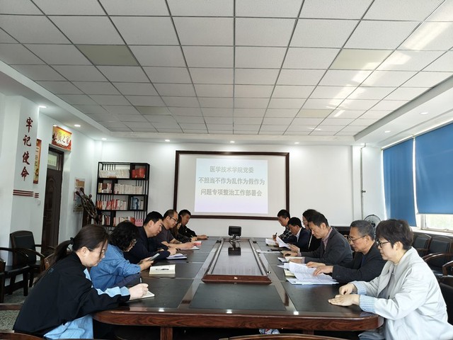 为切实做好不担当不作为乱作为假作为问题专项整治工作,医学技术学院党委高度重视,迅速成立了专项整治工作领导小组,5月20日召开专项整治工作部署会议,全面部署专项整治工作,领导班子成员、科级干部、党支部书记参加会议。