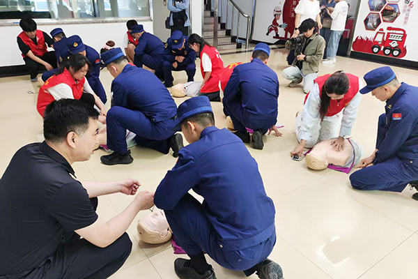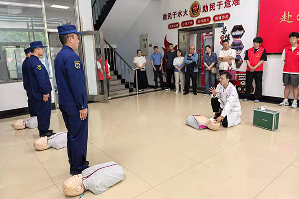 活动现场,民盟齐医基层委员会依托专业资源优势,精心组织盟员教师为建华区消防大队指战员开展心肺复苏急救技能专项培训。盟员教师借助多媒体设备,以图文并茂的形式系统讲解了心肺复苏的理论知识,从心脏骤停的原因、黄金救援时间,到急救过程中的注意事项,每一个要点都进行了深入浅出的阐释。为确保教学效果,教师们还准备了人体模型,现场演示标准的按压姿势、深度、频率,以及人工呼吸的规范操作流程。在实操环节,盟员教师采用 “一对一” 指导模式,对每一位消防指战员的动作进行细致观察与纠正。针对部分指战员按压深度不足、频率不稳等问题,教师们手把手教学,耐心讲解要点,通过反复练习强化记忆。为增加培训的实战性,现场还设置了模拟救援场景,让消防指战员在紧张氛围中运用所学技能进行急救操作,盟员教师实时点评反馈,帮助他们精准掌握急救操作要点,有效提升其在救援现场的应急救护实战能力。