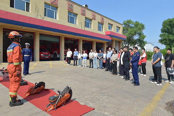 活动伊始,建华区消防大队消防员为民盟医学院基层委员会盟员开展了一场生动的消防知识演示讲解。消防员结合实际案例,详细介绍了火灾预防、应急逃生、初期火灾扑救等实用知识,并现场演示了灭火器、消防水带等设备的操作方法。随后,盟员们走进消防车车库,近距离参观各类消防救援设备,消防员耐心解答疑问,让大家对消防工作有了更直观、深入的认识。