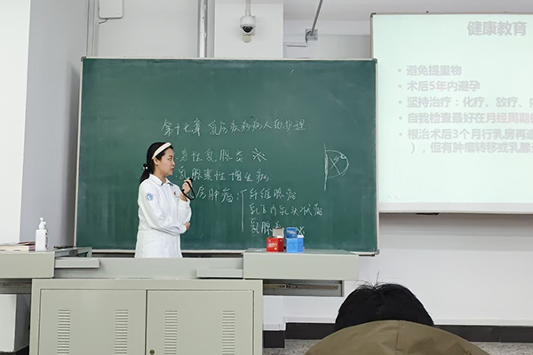在学院理论授课中,她以勤恳、踏实的态度对待学生,将临床实际病例和多年的工作经验融入课堂中,充分调动了学生的积极性,从理论授课到对患者的人文关怀,优化课程内容,结合最新成果和临床最新动态,通过案例分析,小组讨论等互动教学方式,使学生充满兴趣并有所收获,课堂氛围活跃,学生反馈积极。在讲授实践课时,逐一指导学生,认真细致,有效解决了学生在实际操作中遇到的困难,提高了学生的操作水平。在临床带教过程中,她注重理论与实践相结合,对实习生既热心又耐心,有效提升了他们的综合素质。