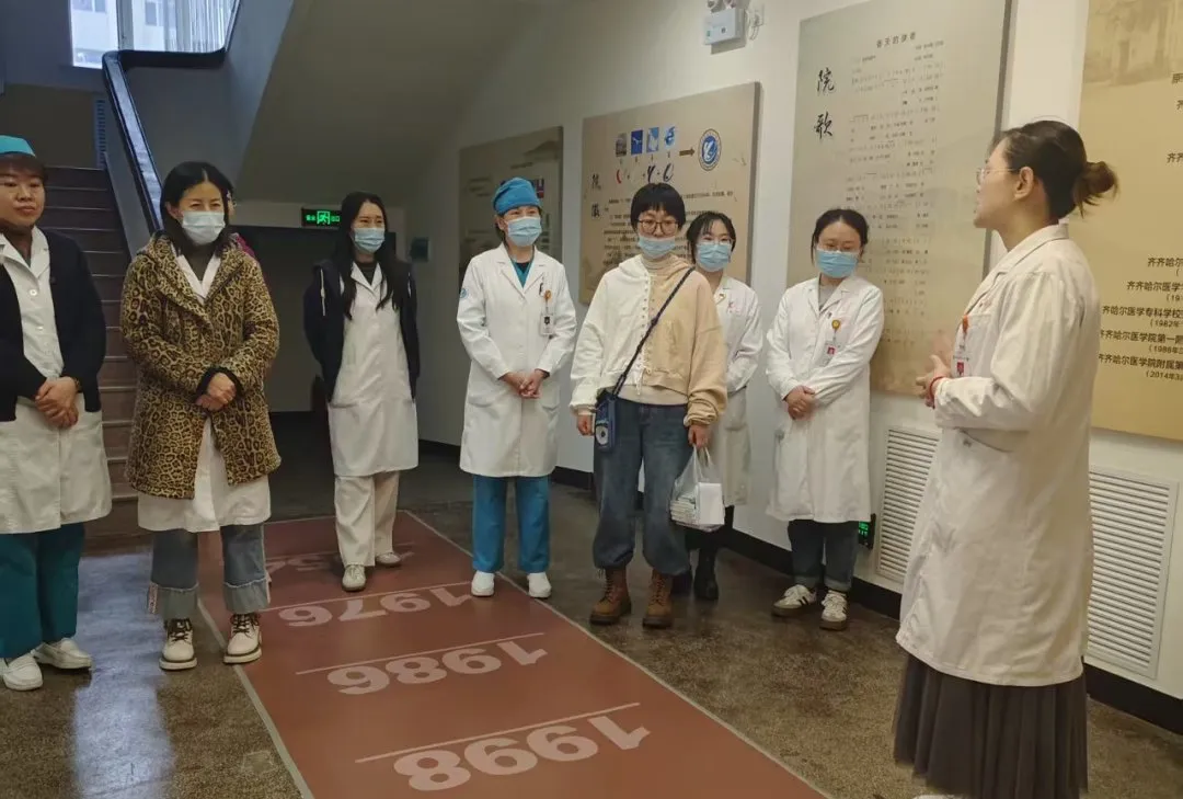 宣传科副科长孙双滨声情并茂地为医院药学人员讲述了医院的发展历史。医院建于新中国第一个“五年计划”时期,一代代附属一院人为医疗事业奋斗终身。1986年,王舒兰教授带领妇产科团队助推学院创建新中国第一个妇产本科专业,研究出“过筛法”教学方式,获得黑龙江优秀教学成果一等奖。经“过筛法”培训后的学生从基础到临床都打下坚实的基础,学生未毕业就被全国各地医院抢定。省教委高度评价,把团队这种奋斗和奉献甘为人梯的精神以带头人王舒兰教授的名字称为“舒兰精神”。1978年6月,医院骨外科权昌元、医生申明家成功开展黑龙江省首例同种异体半膝关节移植术,申明家在1992年研究设计制造专利——“多功能手外科手术固定支架”,极大地解放助手、配台人员的双手,术野扩大,使术者安心为患者服务。此外医院还创建了齐齐哈尔市第一个痔科、国内较早开展动脉溶栓、承担的六五、七五攻关课题以及新生儿尸检活动、80年代开展遗传咨询门诊……。