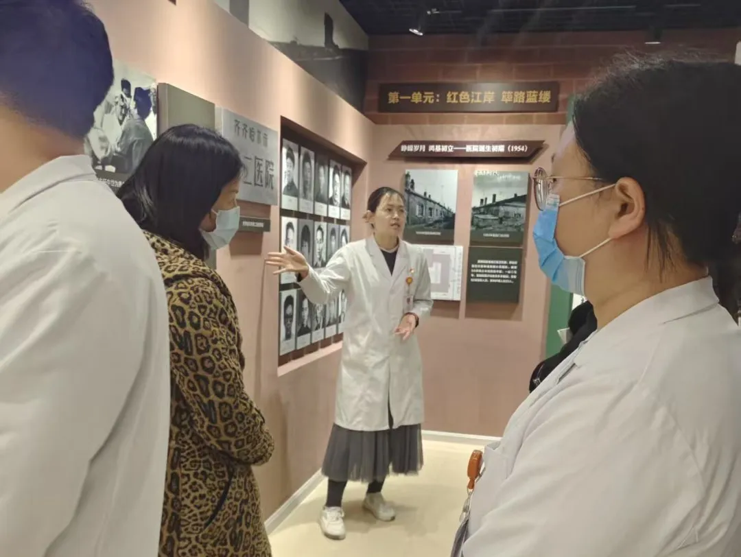 一张张珍贵的老照片、一件件带有历史厚重感的实物、一个个记录着医院辉煌与荣誉的奖牌,一件件刻苦钻研、甘于奉献、默默无闻的附一大医匠心故事,宣传科副科长孙双滨利用大量的历史图片、文物和资料为学生们生动地再现了不同的历史时期和发展阶段中附属一院大医匠心的故事,他们以科学家精神不断进取、开拓创新,为医院发展而奋进,激励参观者向他们学习,大家纷纷表示要向前辈学习,发扬科学家精神,坚定行医之路,不忘来时路,牢记初心志,聚力医疗卫生事业的发展,为祖国医疗卫生事业努力学习!