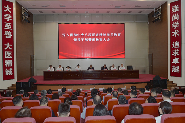 为深入贯彻落实习近平总书记关于加强党的作风建设的重要论述,扎实开展深入贯彻中央八项规定精神学习教育,传达落实全省领导干部警示教育会议精神,6月3日下午,学院在图书行政楼二楼多功能厅召开深入贯彻中央八项规定精神学习教育警示教育会,学院领导班子成员、院本部副处级以上干部、年轻干部、附属医院领导班子成员参加会议。会议由党委副书记张可勇主持。党委书记、院长赵光在会上发表讲话,对贯彻落实会议精神提出要求。