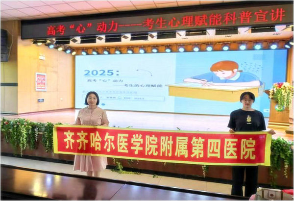 2025年5月28日,齐医附属四院开放病区、精神第二党支部医生张笑然走进齐齐哈尔市民族中学,为即将参加高考的学生们带来了一场主题为“高考“心”动力----考生的心理赋能”心理健康讲座。