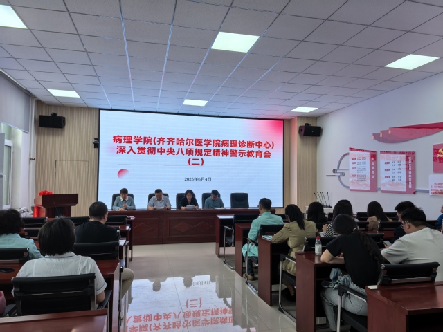 为深入贯彻落实中央八项规定精神,持续深化作风建设,2025年6月4日,病理学院(齐齐哈尔医学院临床病理诊断中心)在形态楼418室召开深入贯彻中央八项规定精神警示教育会。病理学院班子成员、全体教职工参会,会议由病理学院副院长刘婷主持。