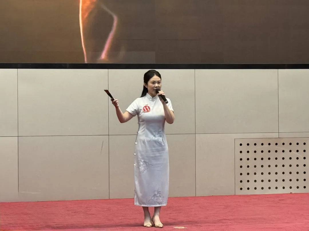 比赛现场,公静深情演绎作品《赤伶》,将家国大义与戏曲艺术完美融合。她以抑扬顿挫的语调、细腻动人的情感,将乱世中伶人舍生取义的悲壮故事娓娓道来。每一声吟诵、每一次停顿,都饱含对经典的敬意与对信仰的坚守,生动诠释了作品的深刻内涵,充分展现出新时代医护工作者的人文情怀与艺术素养,赢得了现场评委和观众的高度赞誉与热烈掌声。