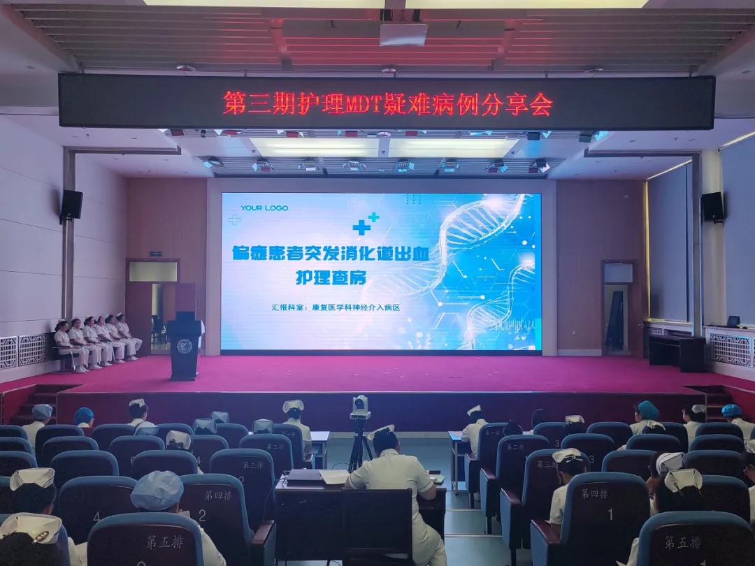 分享会上,康复医学科神经介入病区护理团队分享了一例“偏瘫患者突发消化道出血”病例,同时结合多学科护理进行了详细汇报。