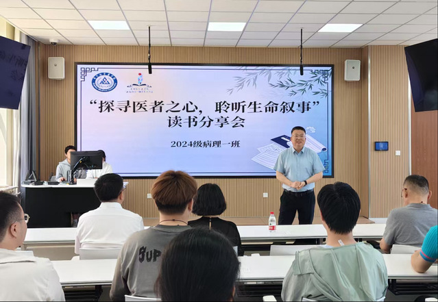 6月11日,学院副院长于海涛走进2024级病理1班,与学生开展了“探寻医者之心 聆听生命叙事”读书分享会。病理学院党总支书记李迎新、院长李兴江、党总支副书记沈焕泉应邀参加活动,活动由辅导员孙荣利主持。