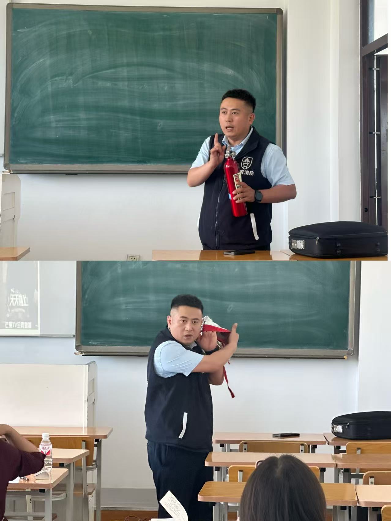 讲座中,王维君教官结合丰富的消防工作经验和实际案例,深入浅出地讲解了消防安全的重要性,并针对火灾预防措施、初期火灾扑救方法以及火场逃生自救技巧等进行了详细讲解。在火灾预防方面,王维君教官阐述了火灾常见发生原因及预防措施。他指出,火灾的发生往往源于疏忽大意,要定期进行消防安全检查、规范电器和燃气使用、合理存放易燃物品等。在火灾扑救方面,王维君教官介绍了不同类型火灾的扑救方法以及逃生技巧,强调了在逃生过程中要保持冷静,低姿势前进,用湿毛巾捂住口鼻,选择正确的逃生路线。此外,王维君教官还现场示范了常用灭火器、灭火毯、多功能应急手电等器材的操作方法。