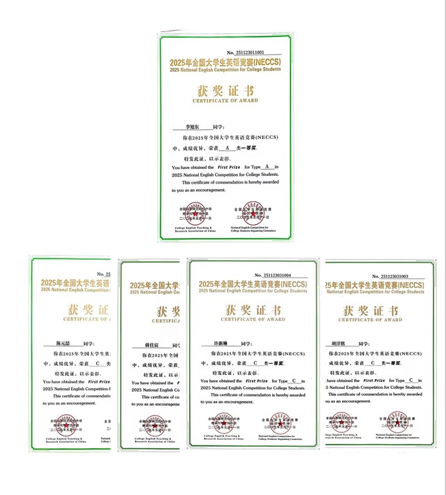 学生在赛事中取得的优异成绩展现了学院外语教学的丰硕成果和人才培养的显著成效。学院通过各类赛事平台,不断强化学生的英语综合素质,为培养具有国际竞争力的复合型人才奠定了坚实基础。自参加大赛以来,学院多次获得优异成绩。外语教研部将继续贯彻以赛促学、以赛促教、以赛促改的理念,将学科竞赛和英语教学相融合,持续推动教学改革的深入和教学质量的提升,力争再创佳绩。