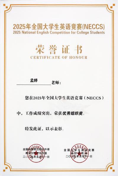 全国大学生英语竞赛(NECCS)是由教育部高等学校大学外语教学指导委员会和高等学校大学外语教学研究会联合主办的全国性大学生英语综合能力赛事,自1999年创办至今已连续举办二十六届。该项赛事规模大、受众多、影响广。此次比赛得到了学院学生的踊跃参与,共有800余名学生报名参赛。