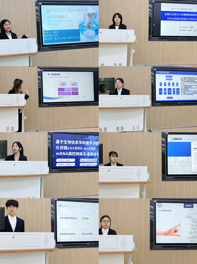 为激发学生创新思维,培养学生实践能力,医学技术学院积极响应学校创新训练计划立项的号召,动员广大师生积极参与,并于6月11日在部系楼A-B101、B-C102教室,举办了医学技术学院2025年大学生创新训练计划立项答辩会,本次答辩会学院邀请了李淑艳教授、郝利国教授、梁明辉高级实验师、李靖宇副教授、刘继鑫副教授、李林副教授担任专家评委,共计有25个项目团队参与了本次答辩。