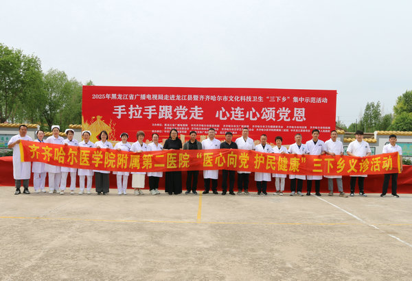 6月13日上午,由黑龙江省广播电视局、中共齐齐哈尔市委宣传部、齐齐哈尔市文广旅游局、齐齐哈尔市卫生健康委员会、齐齐哈尔市司法局、齐齐哈尔市科技局、齐齐哈尔市妇女联合会、齐齐哈尔市科学技术协会、齐齐哈尔市文学艺术界联合会、齐齐哈尔医学院附属第二医院、中共龙江县委员会、龙江县人民政府主办,中共龙江县委宣传部、龙江县文体广电和旅游局、龙江县哈拉海乡承办的“手拉手跟党走、心连心颂党恩”为主题的2025年度齐齐哈尔市文化科技卫生“三下乡”集中示范活动,于龙江县哈拉海乡西里村成功举办。齐医附属二院肛肠科主任周扬、普外科二病区主任李元春、内分泌科二病区主任何静、产科主任高玉春、神经内科六病区主任王岩、血液内科三病区主任张雪芳、口腔科主任邬志锋、超声科主任白连杰等16位医疗护理专家,深入西里村开展“医心向党、护民健康”三下乡义诊活动,共义诊村民130余人次。