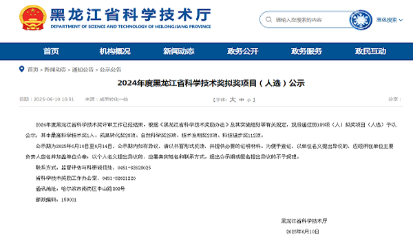 2024年度黑龙江省科学技术奖公示