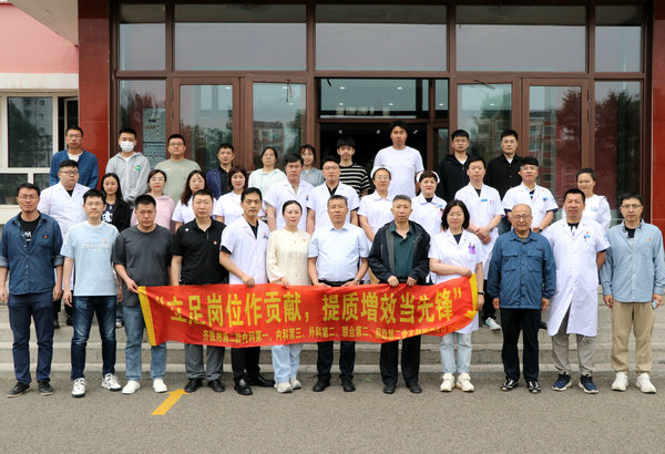 内科第一、第三、外科第二、联合第二及后勤第二党支部党员医生与育新小学领导合影留念