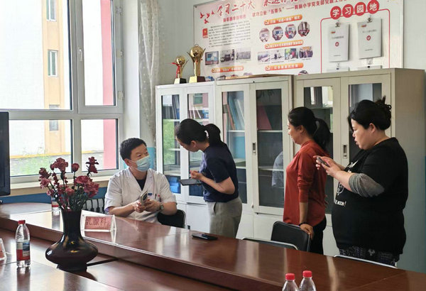 6月12日下午,在党的生日即将来临之际,齐医附属二院内科第一、第三党支部、外科第二党支部、联合第二党支部及后勤第二党支部,联合组成一支30余人的党员专家义诊团队,将优质医疗服务送到育新小学教师身边。