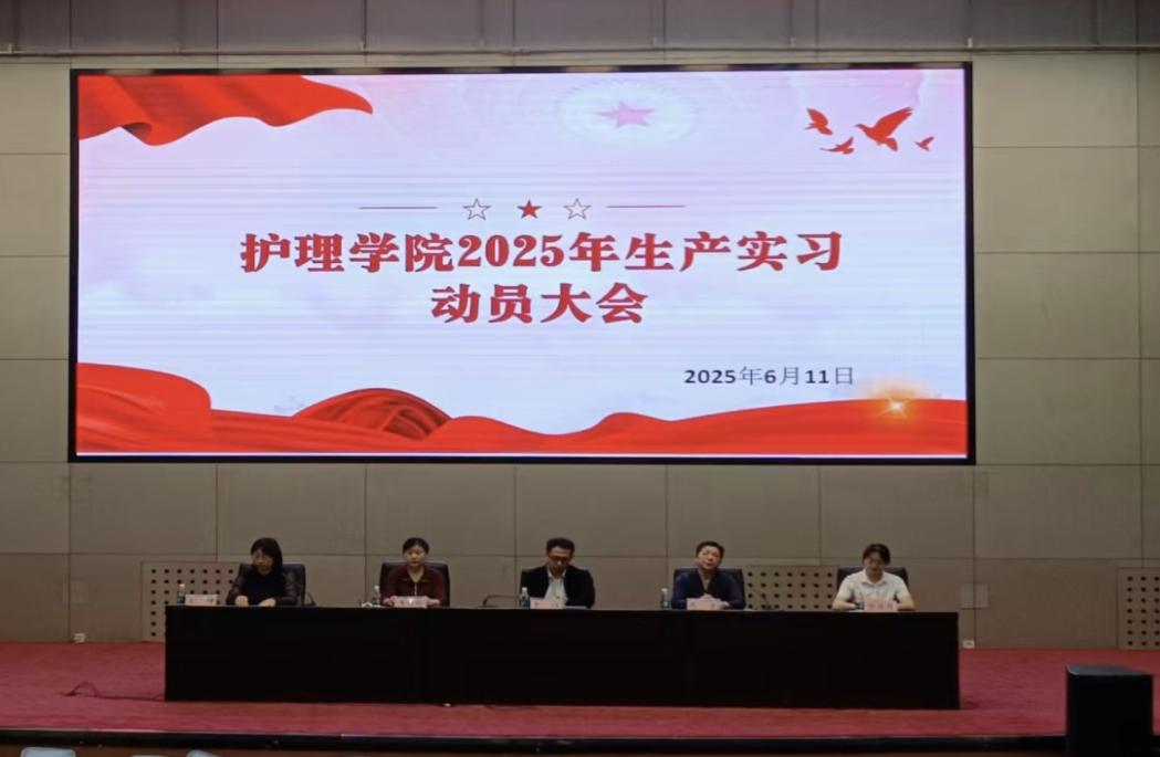 为树立正确的职业认知与实践观念,6月11日上午,护理学院组织召开2025年生产实习动员大会。护理学院党总支书记李强、院长高音、副院长李桂玲、学生工作办公室主任王坤、教务科于丹丹、全体辅导员和2022级全体实习学生参加会议。会议由护理学院院长高音主持。