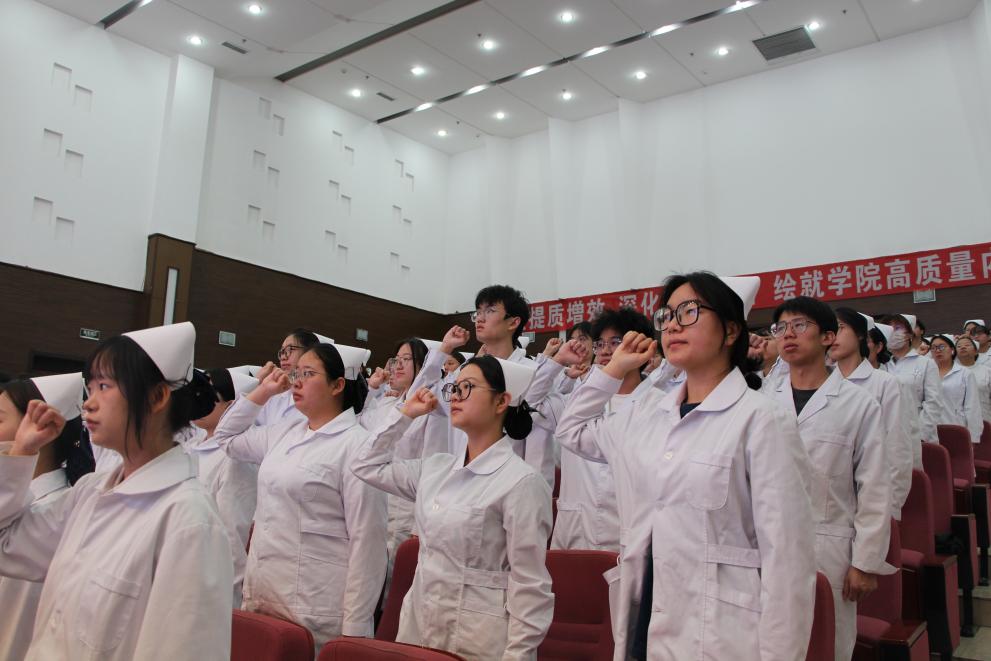 会上,李桂玲副院长宣读各实习基地学生名单及实习队长名单,教务科于丹丹老师对实习教学安排相关内容进行讲解,王坤主任进行实习安全教育。王美晶同学代表2022级全体实习生发言,周浩同学带领全体实习生进行南丁格尔誓言宣誓。