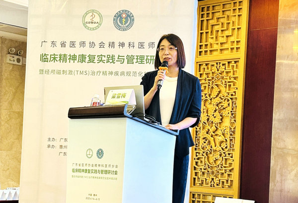 大会上,李平院长以《基于RS-fMRI导航的rTMS干预青少年抑郁症的临床研究》专题作了经验分享,她结合重复经颅磁刺激研究发展现状及见解,为与会同仁提供了宝贵的临床治疗的思路和目前在研项目的进展分享。梁雪梅主任担任深圳康宁医院原院长刘铁榜教授《精神康复的现代概论》报告的主持人,主持过程流畅有序,有效引导了现场学术交流的深度开展。