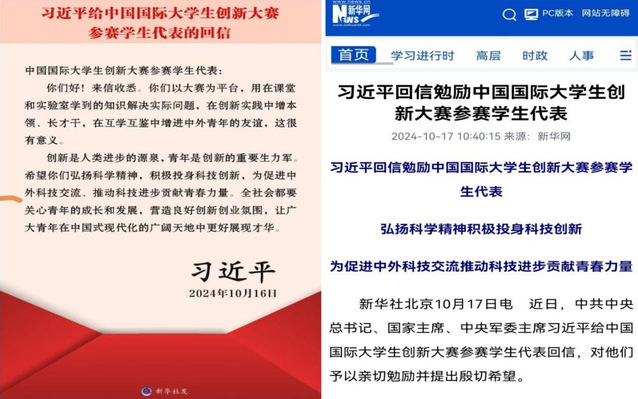 中国国际大学生创新大赛由教育部联合有关部门共同主办,致力于为中外大学生搭建创新创业、交流合作的平台。习近平总书记在亲切回信勉励大赛参赛学生代表时指出,青年学子应当“在创新实践中增本领、长才干,在互学互鉴中增进中外青年的友谊”,这充分体现了对大赛意义和青年创新的高度肯定与殷切期望。