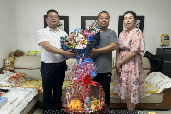 6月21日,齐医附属二院外科第三党支部书记、肛肠外科主任周扬同志带着支部的深情厚谊,将慰问品与鲜花送到支援讷河市人民医院的支部党员、泌尿外科一病区副主任医师徐广驰同志家中,向徐广驰同志及默默支持其工作的家属致以崇高敬意与真挚祝福。
