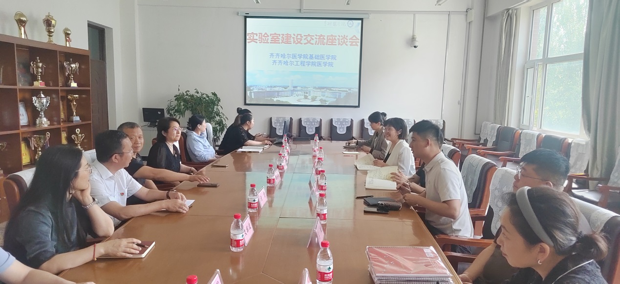 为进一步提升实验室建设水平,加强校际间医学教育资源共享与合作,6月11日下午,齐齐哈尔工程学院医学院姜佳书记、孙强院长等一行 6 人莅临基础医学院开展实验室建设交流活动。基础医学院领导班子、各实验室负责人热情接待,并与来访嘉宾展开深入交流。