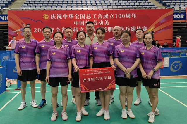 6月25日至27日,庆祝中华全国总工会成立100周年“中国梦·劳动美”2025年省教科文卫体系统职工乒乓球比赛在哈尔滨成功举办。学院选派代表队,与全省47家单位500余名职工同台切磋。