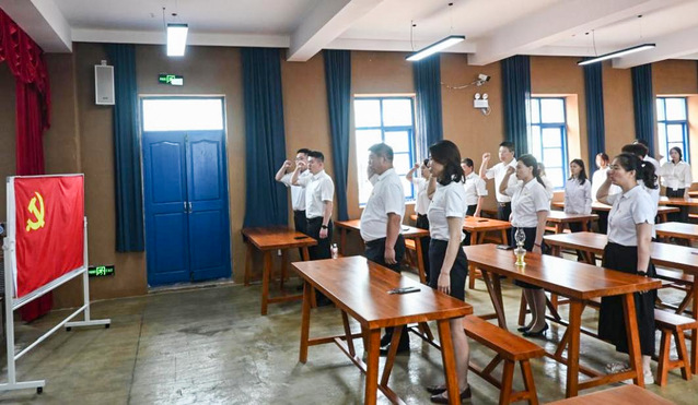 7月1日上午,在党的第104个生日到来之际,机关党委第二、第三支部联合“青马工程”学员,共赴昂昂溪东省特别区第五中学旧址暨中共齐齐哈尔党团组织诞生地旧址(以下简称五中旧址),举行了一场主题鲜明、内容深刻的“七一”主题党日、团日活动。在历史的回响中追溯初心,于庄严的誓言里坚定信仰,为新时代新征程凝聚奋进力量。