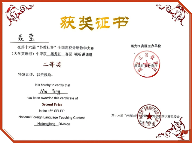 近日,第十六届“外教社杯”全国高校外语教学大赛黑龙江赛区决赛圆满落幕。外语教研部聂莹、陈辛欣两位教师分别获得视听说课组二等奖和综合课组三等奖。