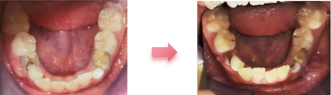 (临床中下颌扩弓的效果多不理想,因此只进行了上颌扩弓,下颌牙弓发生了相应改建)