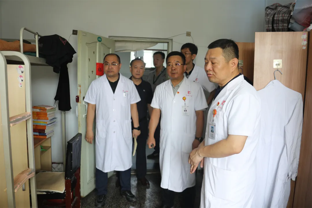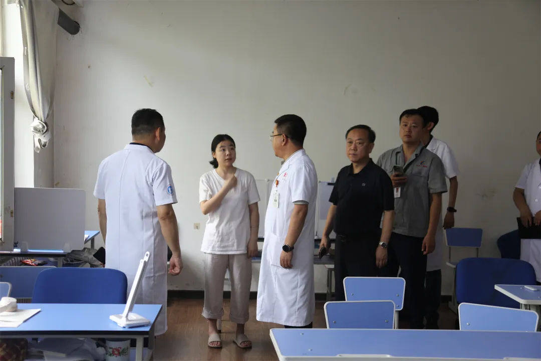十年树木,百年树人。7月11日,齐医附属一院迎来了2023级新生及其他专业实习生共379名学生返校。为深入落实学院“2+3”教学改革,扎实推进医学教育高质量发展,齐医附属一院全面开展教学科研学生管理工作的联合检查。医院党委书记刘旭之,院长党委副书记李忠原,副院长艾立辉、薛徽及教务科、学生科、住培办、总务科、设备科等职能科长,共同对全院教学区、生活区及科研场所开展全面排查,以“零隐患”标准为学生筑牢安全防线。