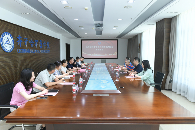7月15日上午,首都医科大学吴浩教授团队一行4人到访齐齐哈尔医学院,双方在图书行政楼1804会议室举行了一场意义深远的交流会议。会前,学院副院长于海涛亲切接见了吴浩教授团队,对他们来院指导表示热烈欢迎,对在吴浩教授指导下我院全科医学学科建设方面取得的成绩表示肯定,希望全科学院在特聘专家吴浩教授的指导下,谋定学科发展规划,扎实推进各项工作。
