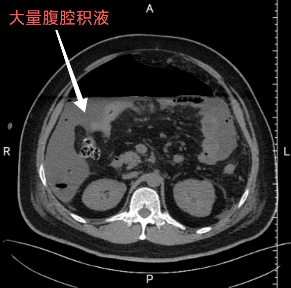 患者因持续性腹部疼痛3天就诊于内蒙古扎兰屯某医院,但因病情复杂、风险极高被建议转诊至具备更高救治能力的医疗机构。家属辗转联系到我院普外三科(肿瘤外科)主任邵学谦,尽管此时正值非急诊班时段,普外三科(肿瘤外科)医护团队仍以高度的责任感迅速响应,第一时间启动危重症抢救流程。该患者全腹CT检查显示:消化道穿孔伴广泛腹腔积液,实验室指标提示贫血、低白蛋白血症、低血容量及全身炎症反应。入院时,患者已出现全腹压痛、反跳痛等急性腹膜炎体征并伴有感染性休克,病情凶险,穿孔部位待排,情况十分危急,需争分夺秒实施手术干预。