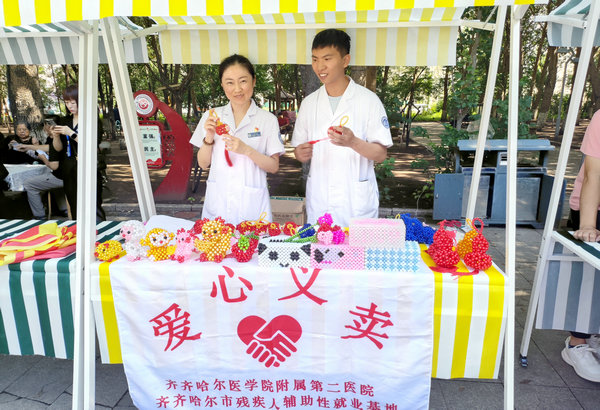 近日,齐医附属二院精神第二党支部党员,在支部书记赵艳华、组织委员霍红亮的带领下,积极参与铁锋区北局宅街道自卫社区第六届便民服务大集,开展精神康复公益义卖与健康科普活动。