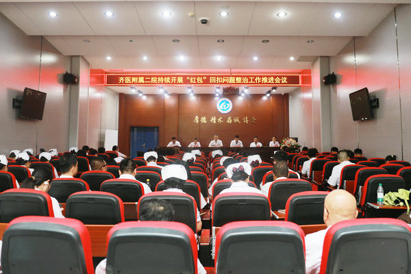为纵深推进全面从严治党,全面落实省委巡视整改要求及省卫健委、学院党委专项整治工作部署,进一步净化医疗卫生生态、切实维护群众健康权益,7月24日下午,齐医附属二院在临床技能中心多功能厅召开持续开展“红包”回扣问题整治工作推进会议,全体党委班子成员、中层干部、党支部书记、关键岗位责任人参加会议。