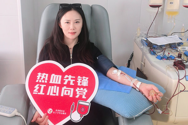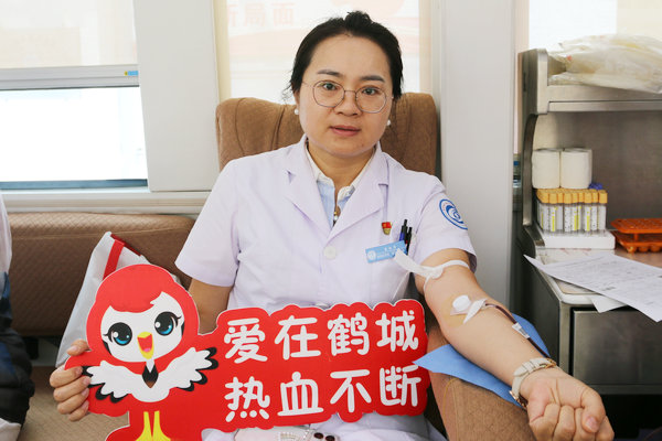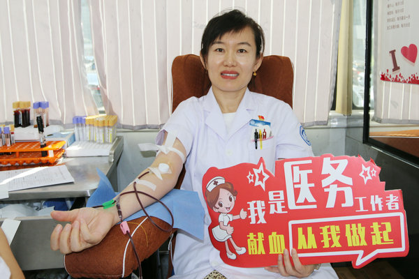 医疗设备采购供应科长韩秀丽赴中心血站献血小板