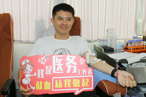 骨外科一病区副主任董平的经历,是众多职工热忱献血的缩影。他近年来一直积极报名献血,却常因倒夜班身体疲劳导致指标不达标而遗憾错过。今年他再次主动报名,终于成功献血400毫升。“今天能成功献上血,特别高兴!”董平完成献血后欣慰地表示。