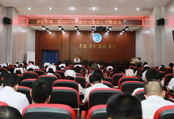 7月31日下午,齐医附属二院在临床技能中心一楼多功能厅召开2025年德师风建设工作推进会,院长、党委副书记武立刚讲话,副院长刘波主持会议、传达文件精神,党委书记刘增良等全体党委班子成员及中层干部200余人参加会议。