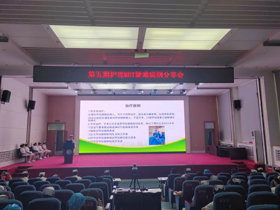 为持续提升护理团队对甲状腺肿病人的综合管理能力,7月31日,齐医附属一院护理部在综合楼学术报告厅成功组织召开了第五期护理多学科协作(MDT)疑难病例分享会。本次会议通过分享典型病例的护理难点和解决方案,帮助护理人员学习先进的护理理念和技能,提高护士对甲状腺肿患者的整体护理质量,同时通过为患者制定更精准个性化的护理方案,促进患者康复,改善患者生活质量。