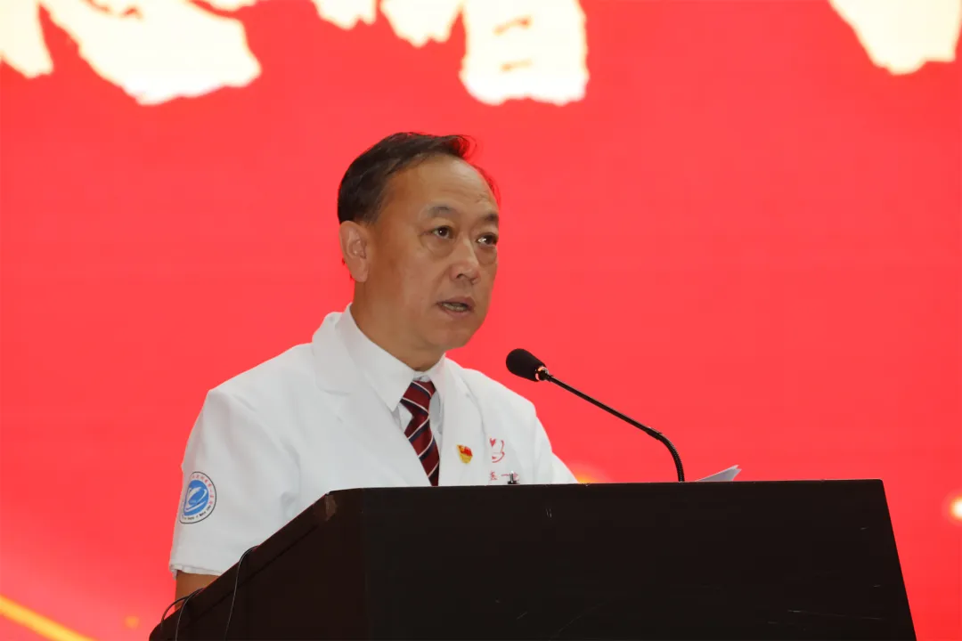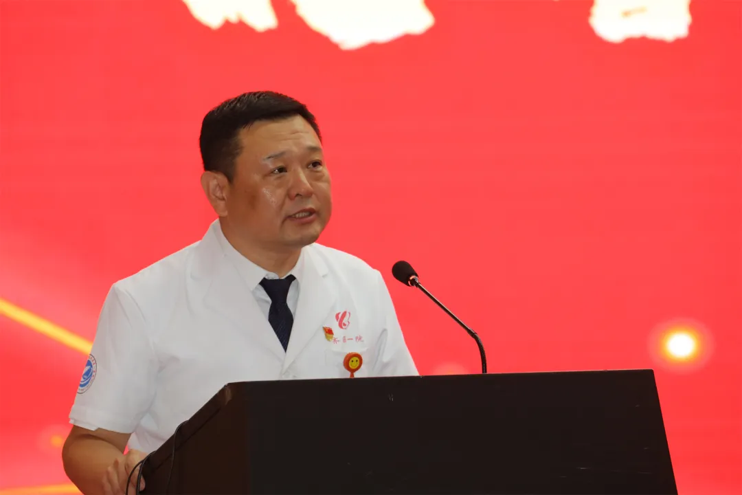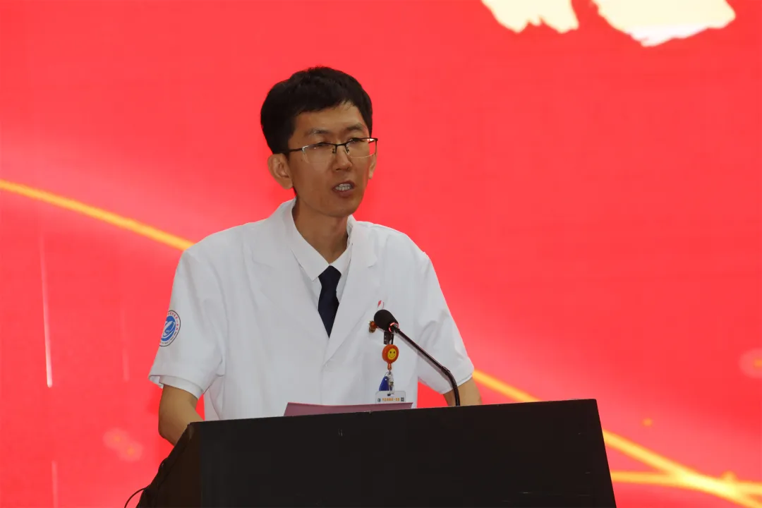 党委书记刘旭之发表讲话。刘书记指出,在过去这一年时间里,医院顺利通过第三轮三级甲等医院评审、获评国家级“高级卒中中心”、荣膺第七届“全国文明单位”称号、电子病历应用水平分级达到五级,这些耀眼的成绩离不开全院医务工作者的努力和奋斗。在此,他代表医院领导班子,向奋战在全院各岗位上的医师同仁们致以最诚挚的节日问候和崇高敬意!对过去一年中通过不懈努力与辛勤工作,荣获表彰的优秀医师及优秀团队表示祝贺。