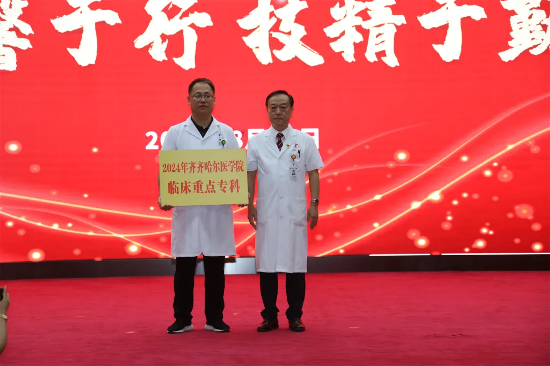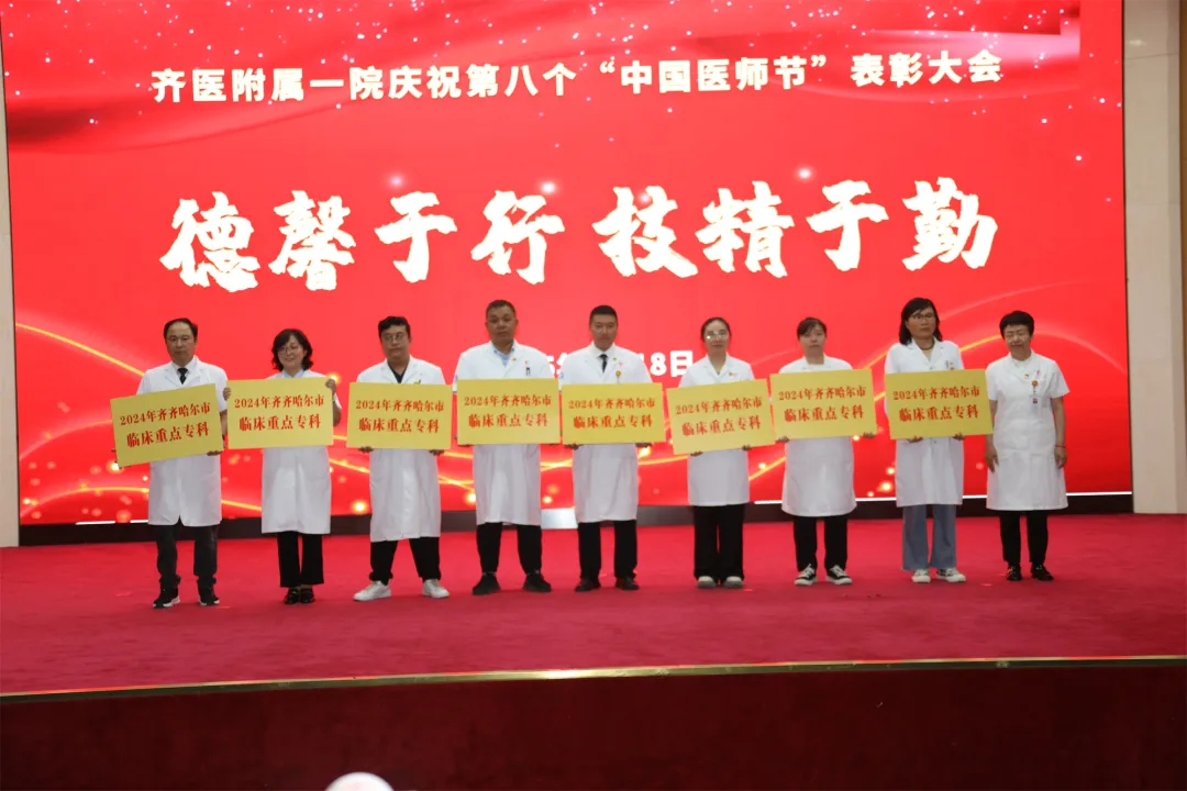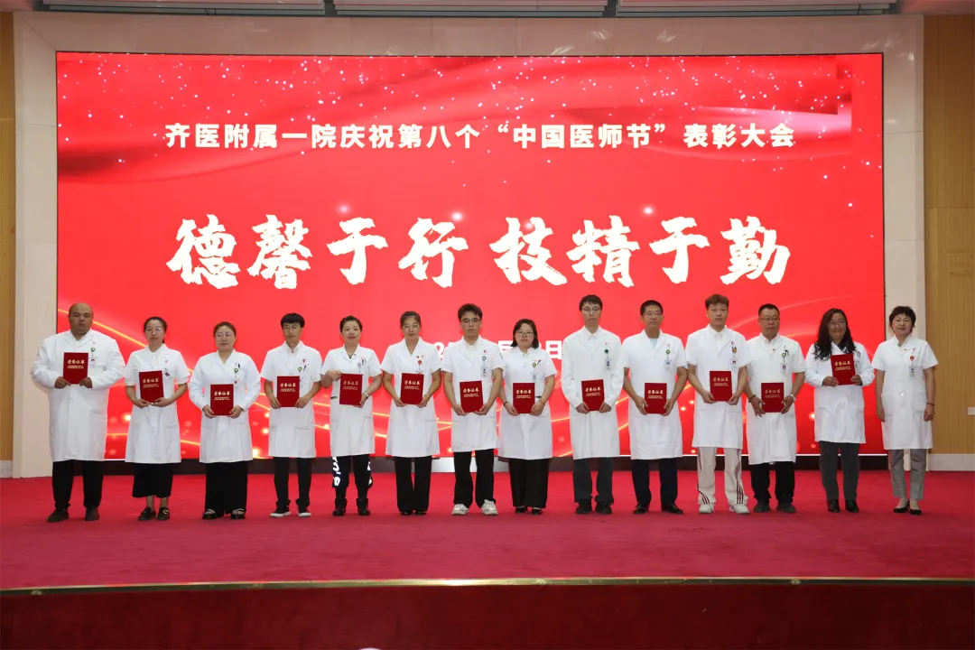 副院长艾立辉同志宣读《齐齐哈尔医学院附属一院关于表彰第八个“中国医师节”获奖科室及个人的决定》。随后,获奖科室代表和个人依次上台,接受荣誉表彰。